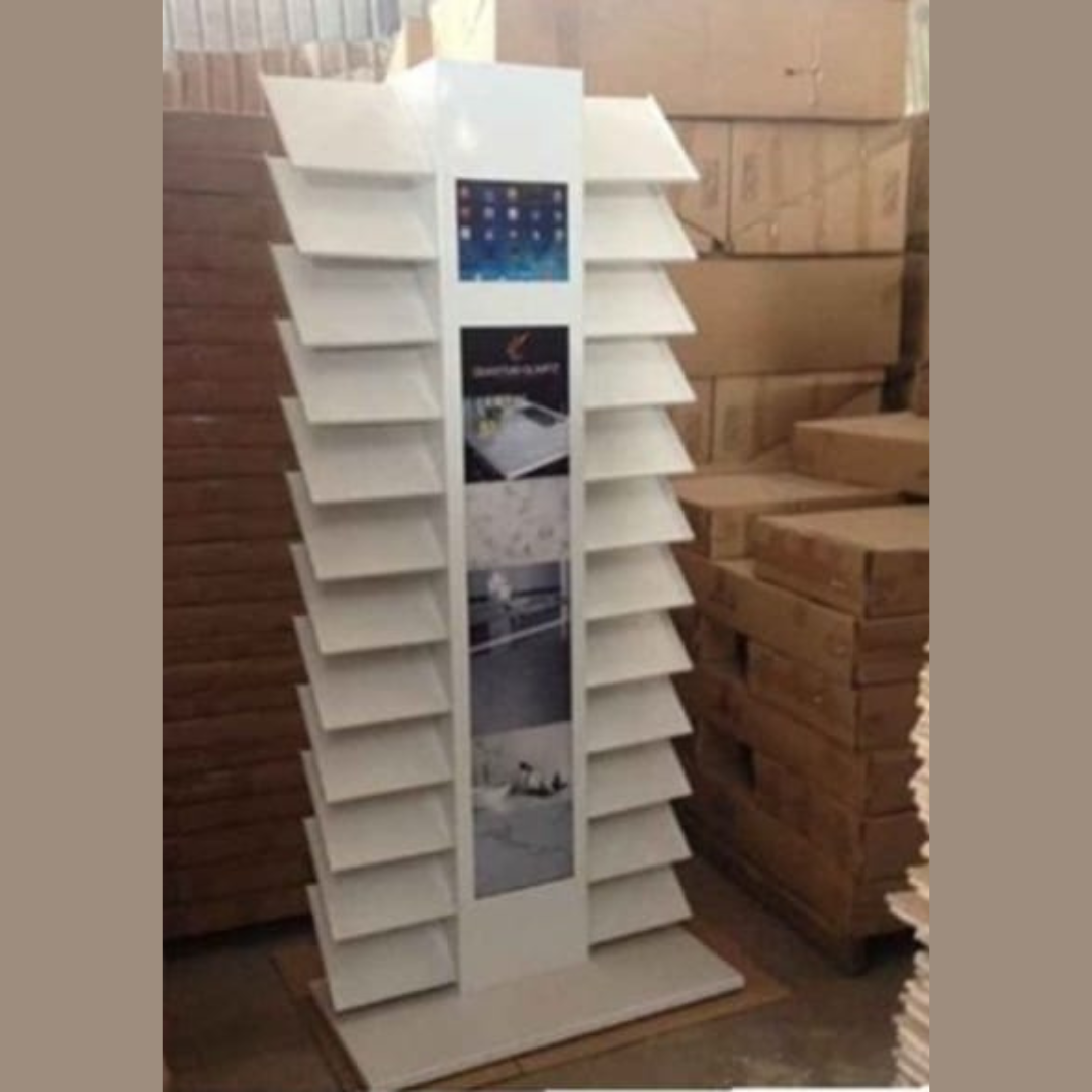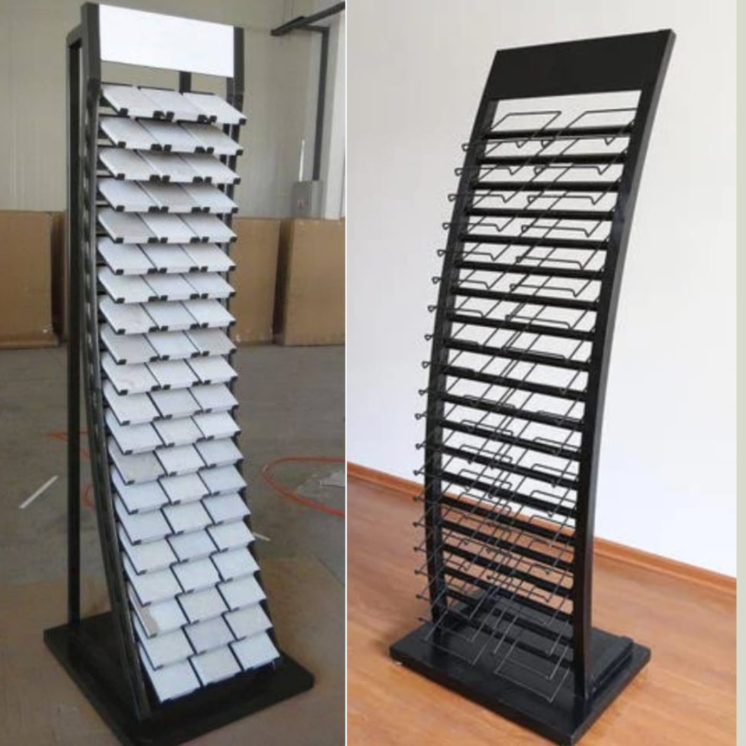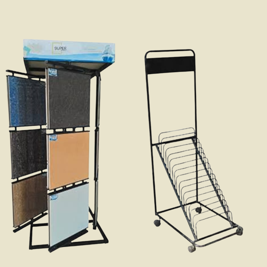 From ceramic tile display racks and Bombay book systems to booklet, slider, quartz, granite, and marble stands, our wide product range is manufactured to handle heavy loads while maintaining long-term strength and stability.